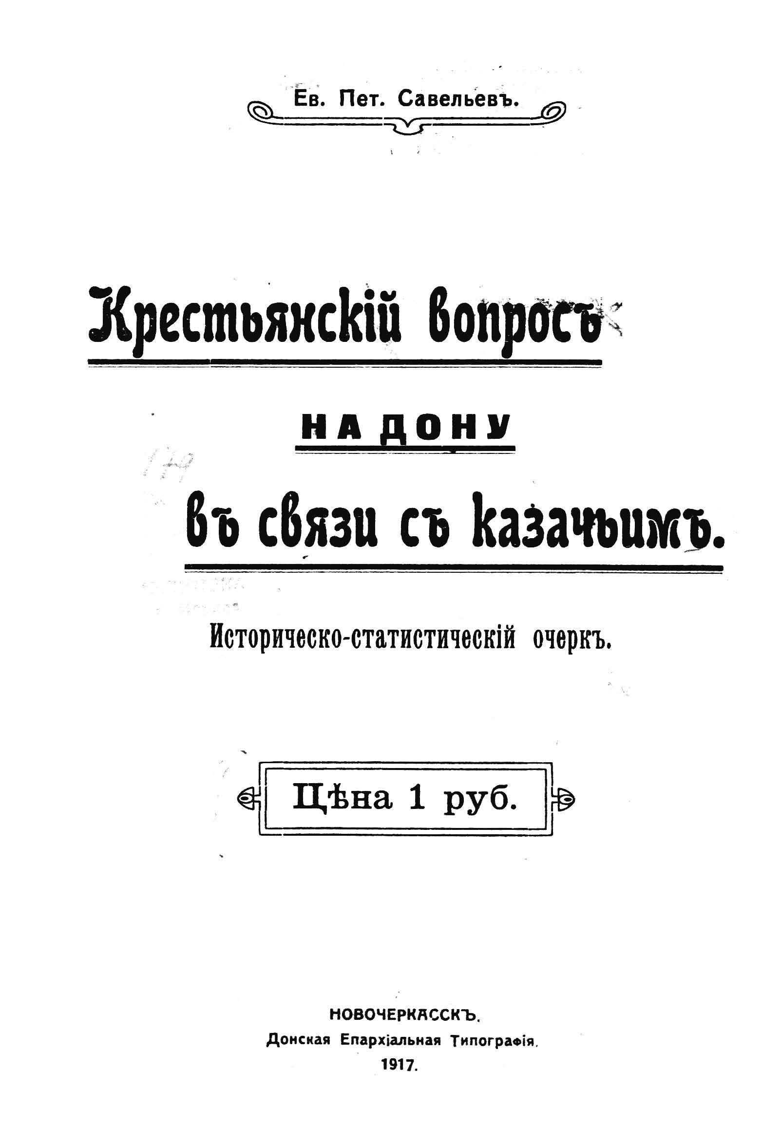 Работа, в которой с опорой на богатый статистический материал подробно рассматривается политика правительства России по отношению к казакам, а также крестьянам и иногородним на Дону во второй половине XIX - начале XX вв., подвергается критике существующая система войскового землепользования и землевладения. |